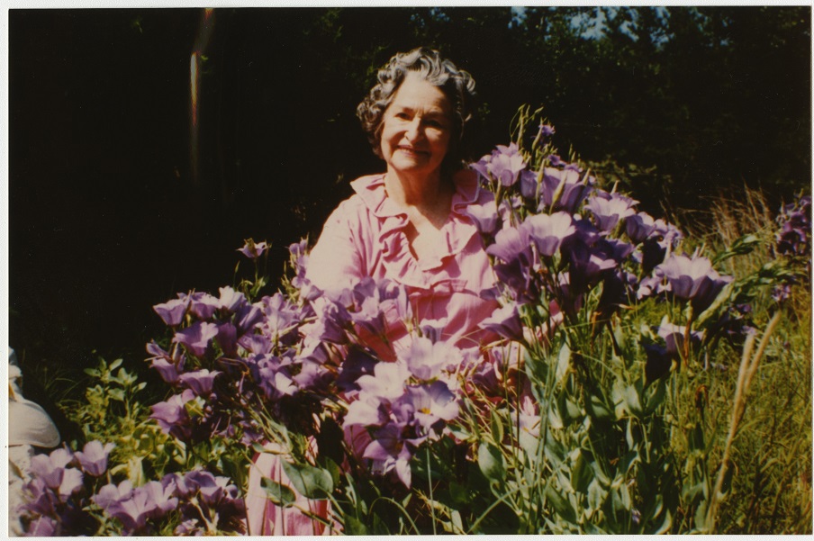 Seen with her flowers, Lady Bird Johnson (First Lady to President Lyndon B. Johnson) was an advocate for the planting of wildflowers, beginning with her husband’s signing of the Highway Beatification Act in 1965. This bill included funding for landscaping, influencing today’s roadside foliage.