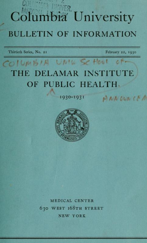 Columbia University bulletin of information : DeLamar Institute of Public Health : announcement