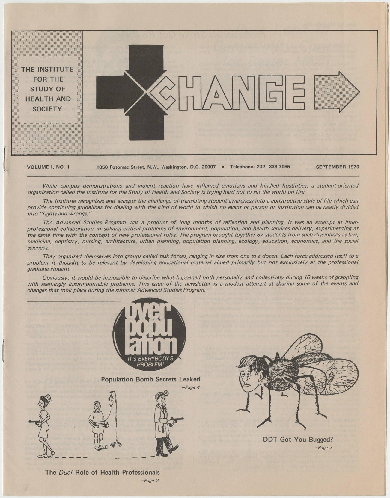 This newsletter documents the ISHS’s Advanced Studies Program, which was comprised of task forces in health services delivery, environmental control, population, and information services, and was funded by the federal Department of Health, Education, and Welfare.